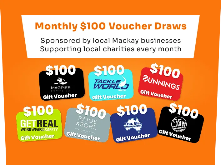 Vouchers rotate monthly and are proudly sponsored by local Mackay businesses.